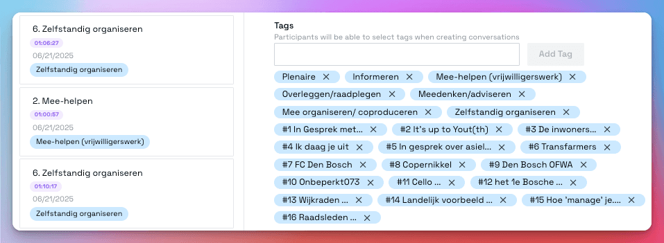 As Den Bosch faces new social and urban challenges, meaningful citizen input is more critical than ever. Like many cities, Den Bosch recognized that building better policy requires not only reaching out to its population but genuinely listening and making their voices visible in the outcomes. However, large-scale participatory processes can be slow, costly, and burdensome for both organizers and residents. To counteract this, the city took a pragmatic approach, using digital recording and streamlined transcript analysis to ensure that every participant’s story could help inform policy — without getting lost in the noise.